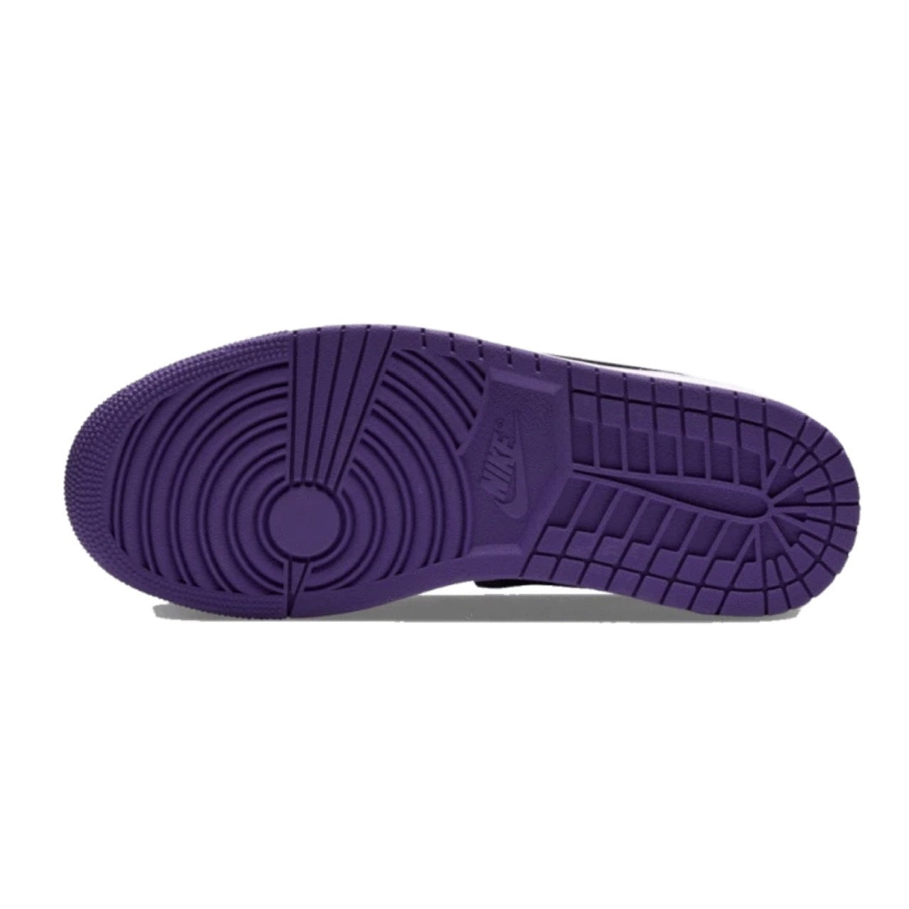 Completando o modelo, o solado em borracha roxa garante tração e durabilidade, mantendo o espírito clássico do AJ1 com uma pegada atualizada.