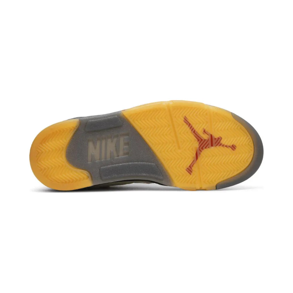 Criado em colaboração com a marca de luxo streetwear de Virgil Abloh, o Off-White x Air Jordan 5 Retro SP “Creme” dá continuidade à parceria iniciada com o AJ5 preto no início de 2020. Esta edição apresenta um cabedal têxtil em camadas no tom creme, marcado pelos recortes circulares característicos no mediopé, no colar e na língua prateada refletiva.